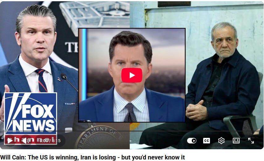 I am guessing that tens of million Americans - mostly over the age of fifty - get all their news from Fox. I’m sure most of them believe Will Cain and Sean Hannity when they says the war is almost over and America has won.